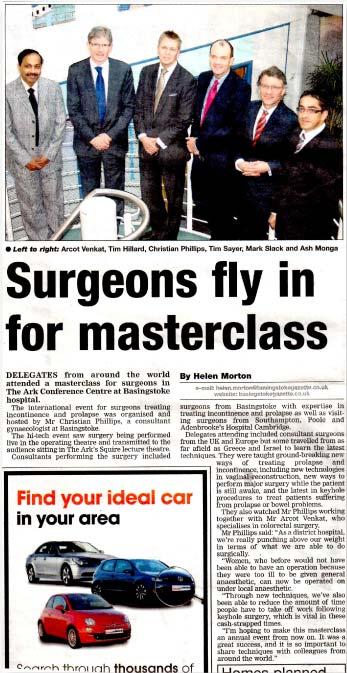 Delegates from around the world attended a masterclass for surgeons in The Ark Conference Centre at Basingstoke hospital. The international event for surgeons treating incontinence and prolapse was organised and hosted by Mr Christian Phillips, a consultant gynaecologist at Basingstoke.